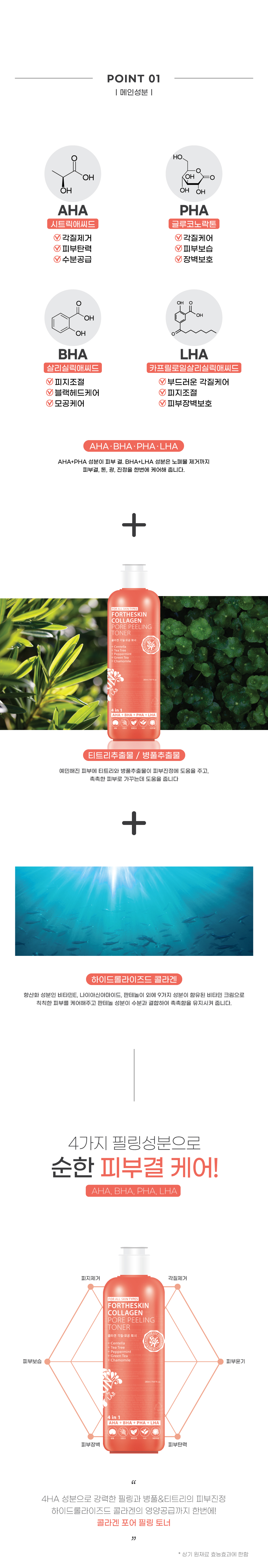 또한 AHA, BHA, PHA, LHA 성분이 함유되어 넓은 모공을 유발하는 피부 내부의 노폐물과 각질을 제거해 피부를 깨끗하게 만든다.